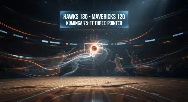 Atlanta Hawks forward Jonathan Kuminga, 23, made a 75-foot three-pointer in the third quarter during his team's 135-120 win over the Dallas Mavericks on March 18, 2026, at American Airlines Center in Dallas, Texas.[1][2]